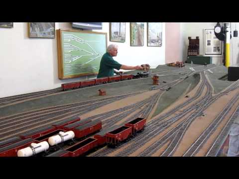 Действующий макет сортировочной горки выполнен в 1937 году, он наглядно показывает устройство горки с параллельно расположенными парками прибытия, сортировки и отправления. Маневровый локомотив вытягивает из парка прибывшие вагоны, затем надвигает их на вершину горки и ...посетитель видит, как каждый вагон-отцеп спускается с вершины горки и за-нимает приготовленный диспетчером-экскурсоводом путь. В этом же зале по теме "Развитие устройств СЦБ в 1920-1930-х годах" в экспозиции представлены действующие жезловые аппара-ты Д.С. Трегера, аппараты перегонной электромеханической полуав-томатической блокировки, однокрылый семафор и семафорный повторитель.